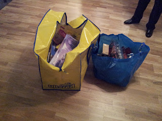 Det ble ganske mange pakker å åpne på julaften. Vi holdt på i over tre timer med å pakke opp alle pakkene. Jeg fyllte opp storposen min med pakker, men fordi jeg var så redd for at bunnen skulle ryke, måtte jeg fordele de i flere små plastposer. Til å med baby fikk julegave. Hjemmestrikka votter og sokker fra ei venninne som skal ha baby i april. Kjempefornøyd med gavene i år også.
